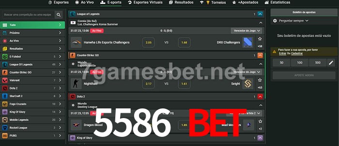 O 5586 Bet oferece uma grande seleção de opções de apostas em e-sports com probabilidades competitivas